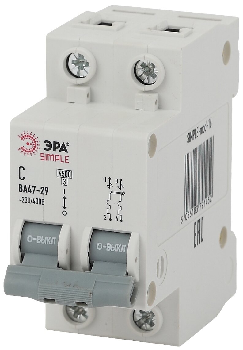 Автоматический выключатель 2P (2П) 10А (С) 4,5кА ВА47-29 SIMPLE-mod-11 Б0039228 ЭРА 6шт