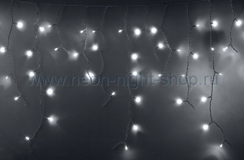 Neon-Night Гирлянда Айсикл (бахрома) светодиодный, 2,4 х 0,6 м, черный провод, 220В, диоды белые, NEON-NIGHT