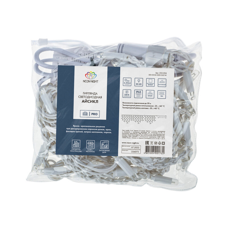 Гирлянда Neon-Night Айсикл 2.4x0.6m 88 LED White 255-032
