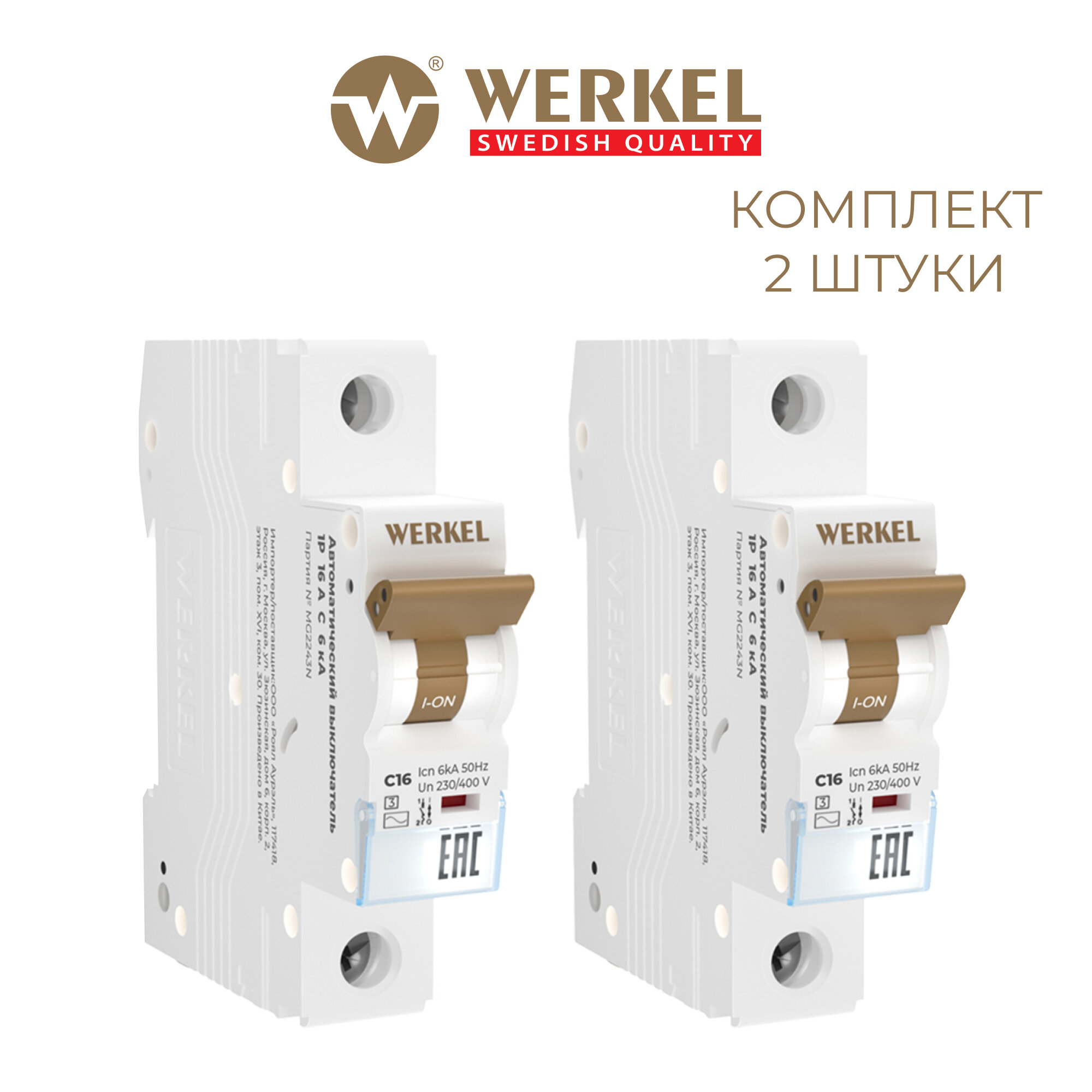 Автоматический выключатель 2P Werkel W902P166, 16 A, ВТХ C, 6 кА