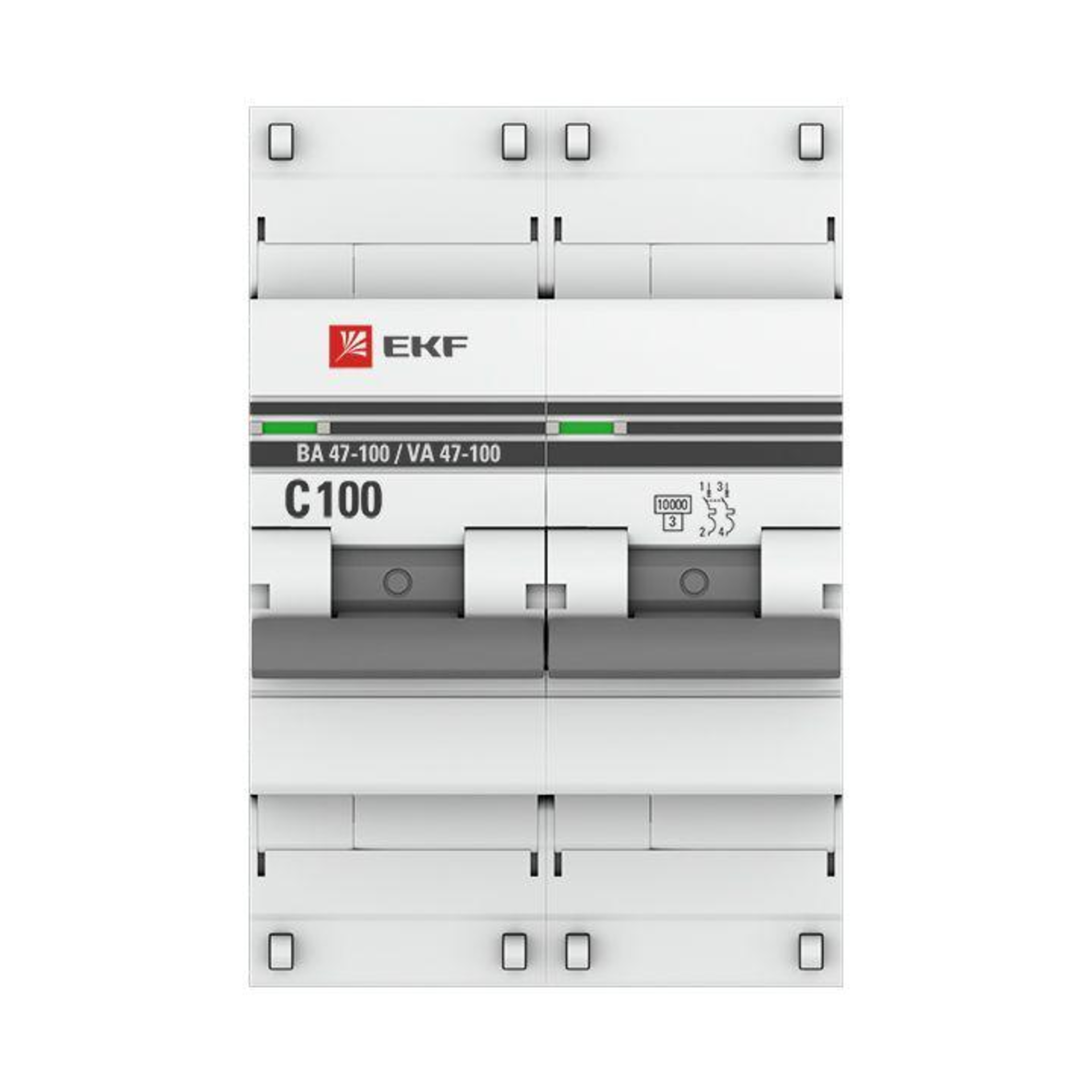 Автомат 63А, тип C, двухполюсный 2P, 10kA, cо встроенной опломбировкой клемм EKF PROxima ВА 47-100 (Автоматический выключатель C63)