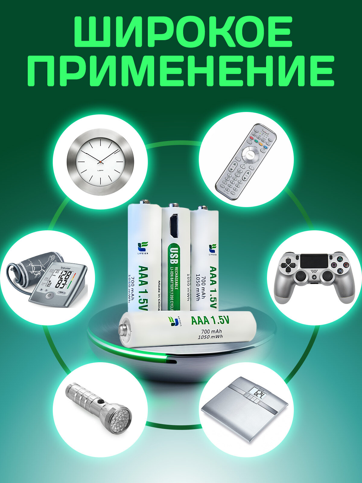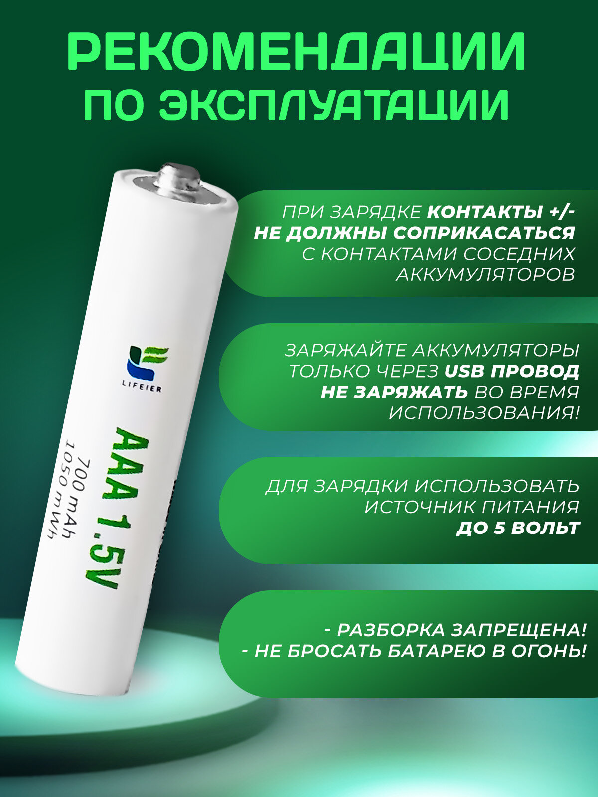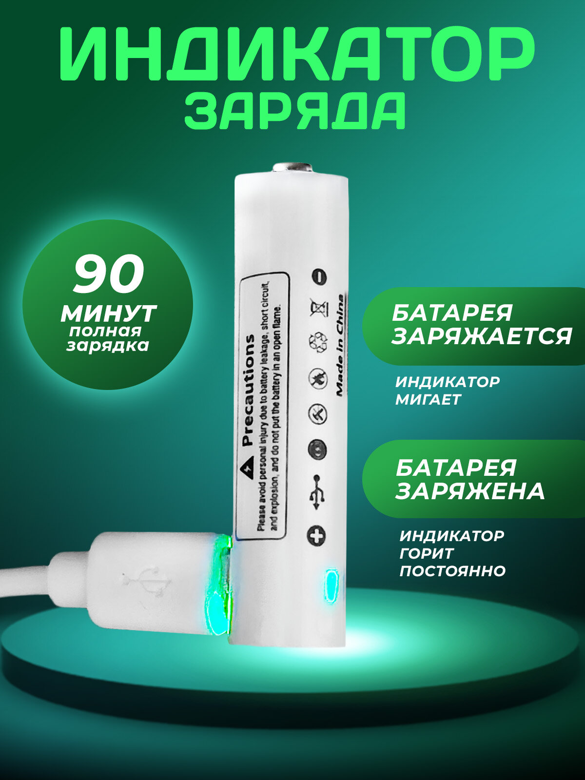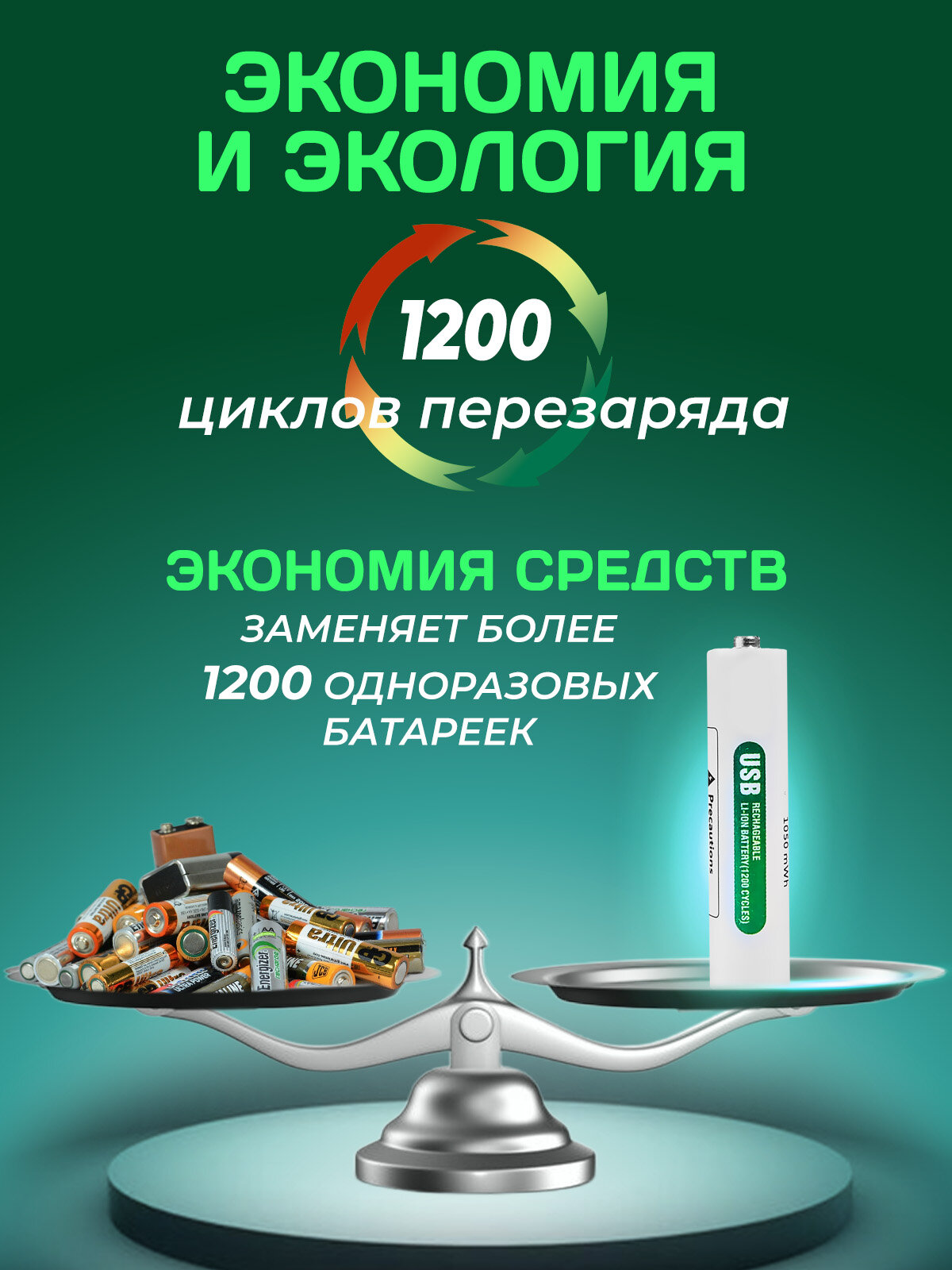 Аккумуляторные батарейки, AAА, Li-Ion, 1050 mWh, с кабелем USB, 4шт интересное: