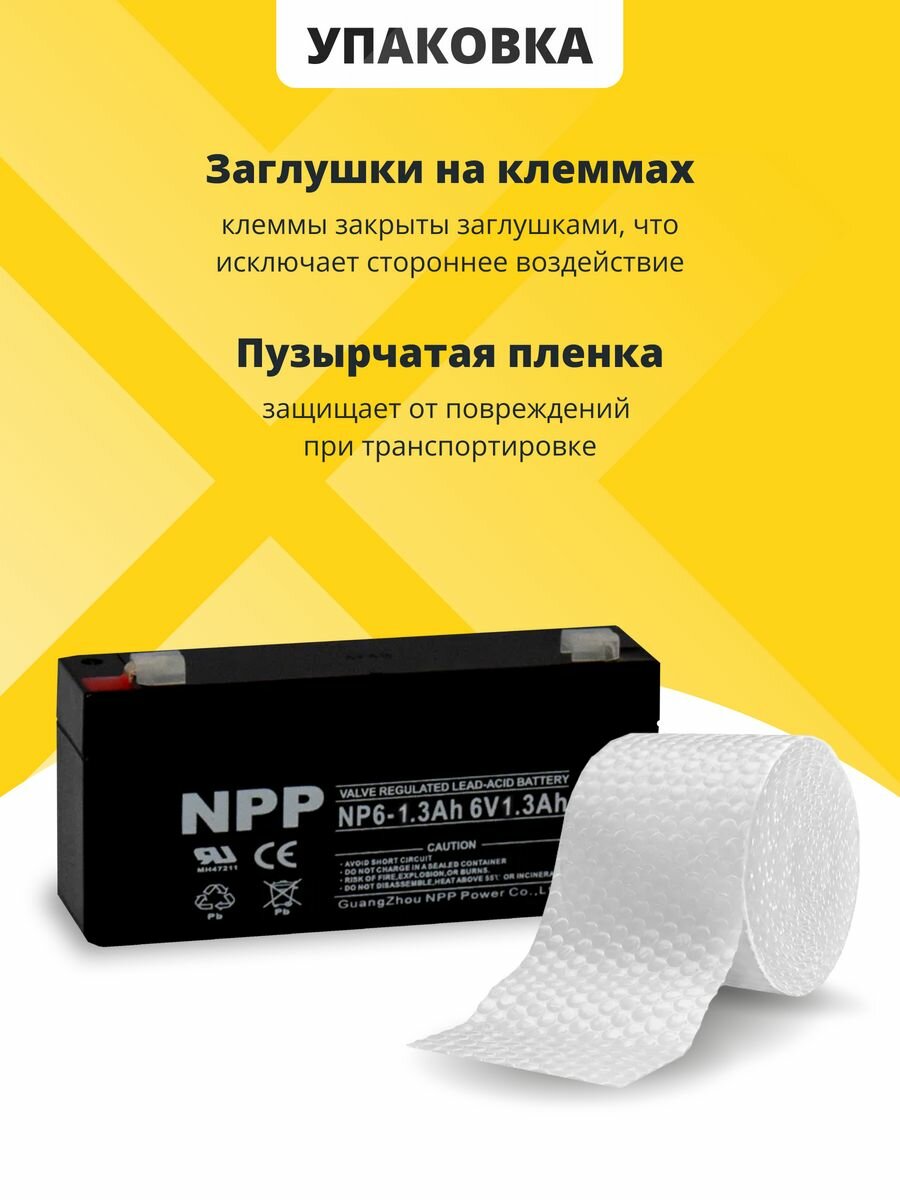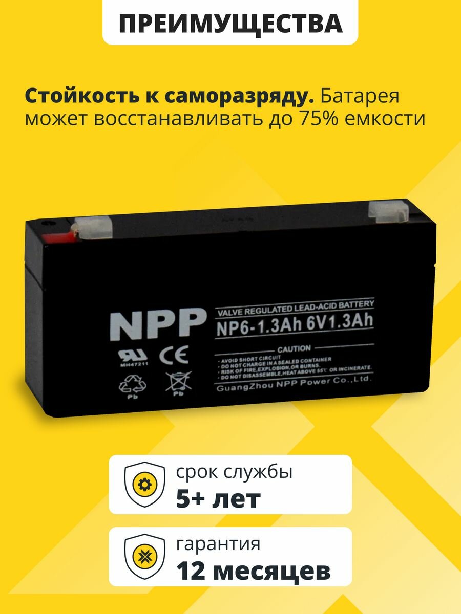Купить Аккумулятор 6v 1,3 Ah NPP AGM F1/T1 акб для игрушечной машины, весов 97x25x58 мм