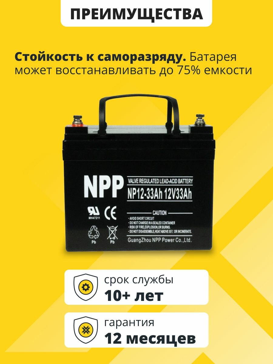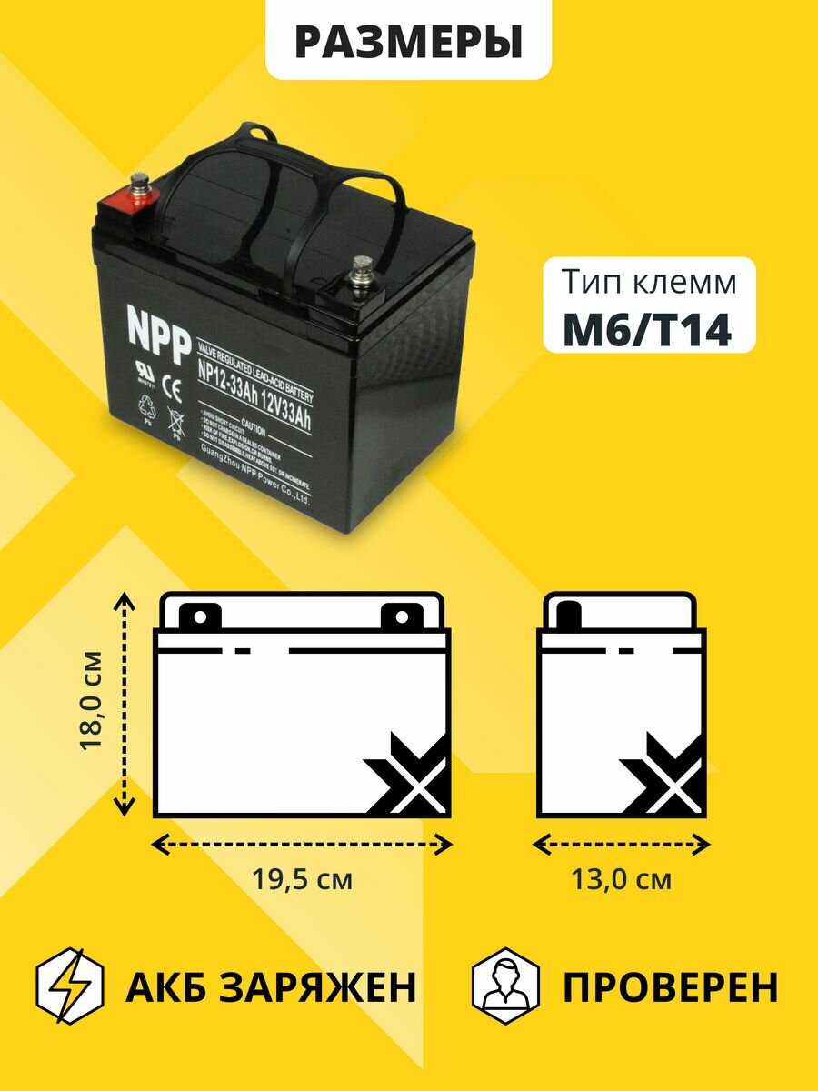 Купить Аккумулятор для ибп 12v 33 Ah NPP AGM M6/T14 акб компьютеров, котлов 195x130x180 мм