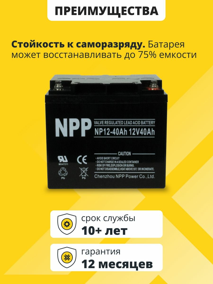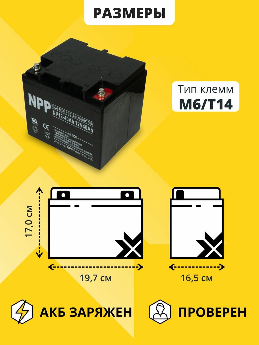 Купить Аккумулятор для ибп 12v 40 Ah NPP AGM M6/T14 акб детского электромобиля 197x165x170 мм