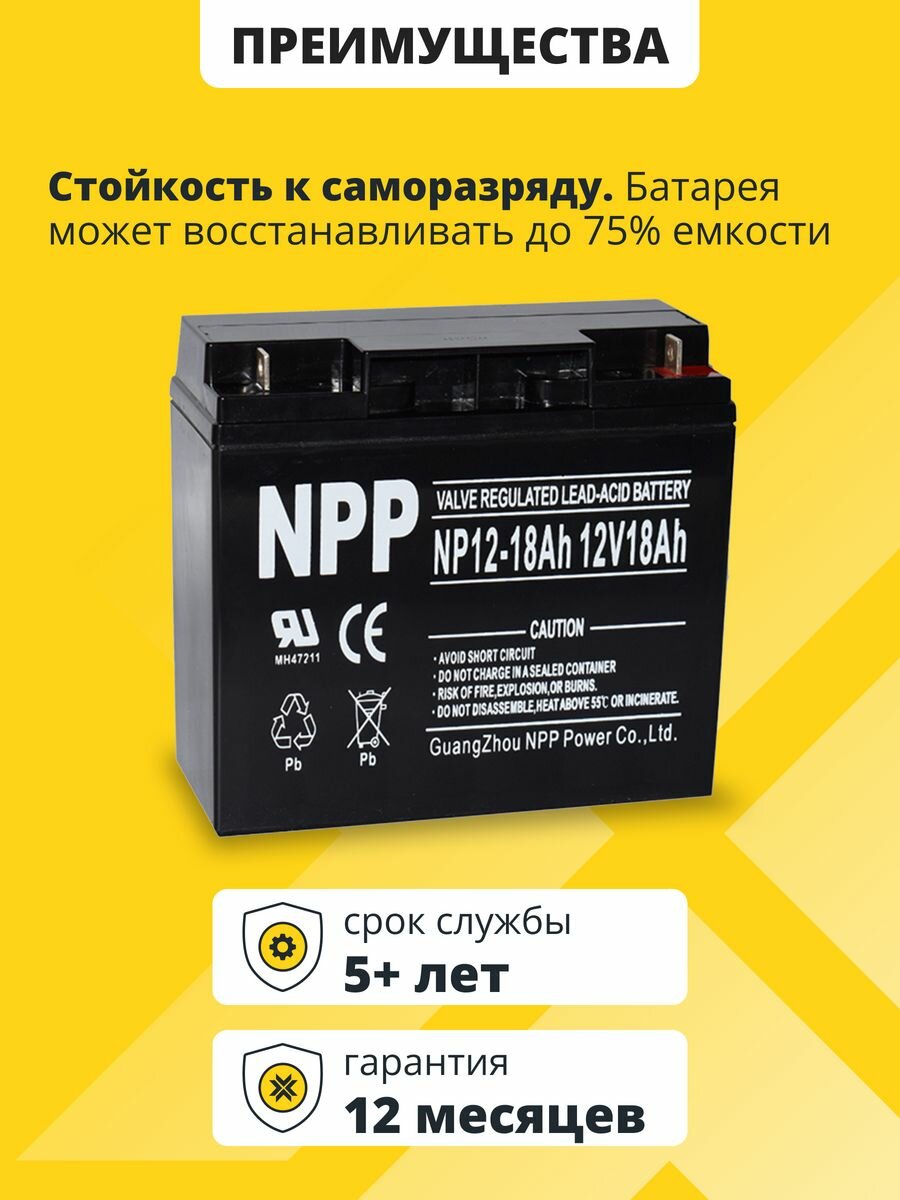 Купить Аккумулятор для ибп 12v 18 Ah NPP AGM M5/T3 акб котла, весов, компьютера 181x77x167 мм