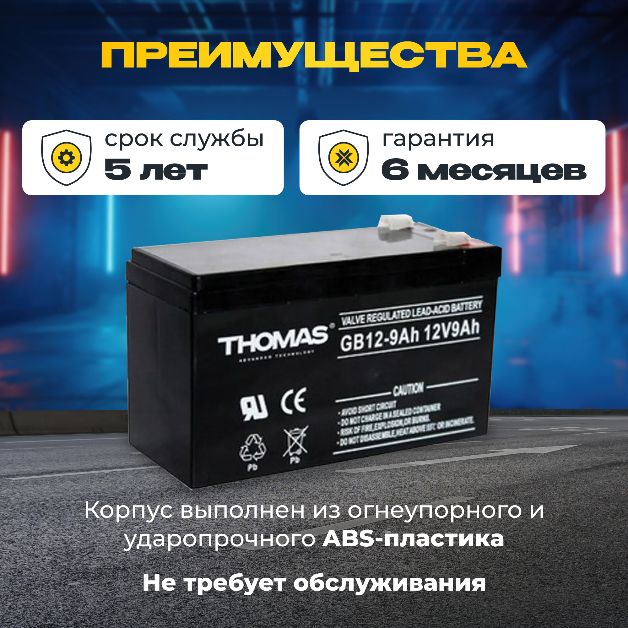 Купить Аккумулятор для ибп 12v 9Ah THOMAS AGM F2/T2 акб эхолотов, игрушечных машин 151x65x100 мм