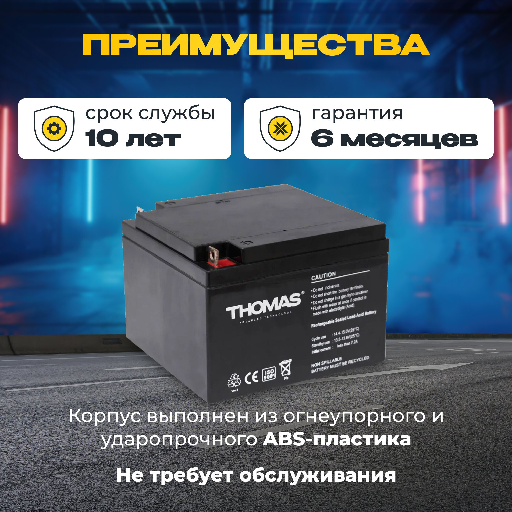 Аккумулятор для ибп 12v 26 Ah Thomas акб для системы видеонаблюдения, охранно-пожарной сигнализации, связи, эхолотов