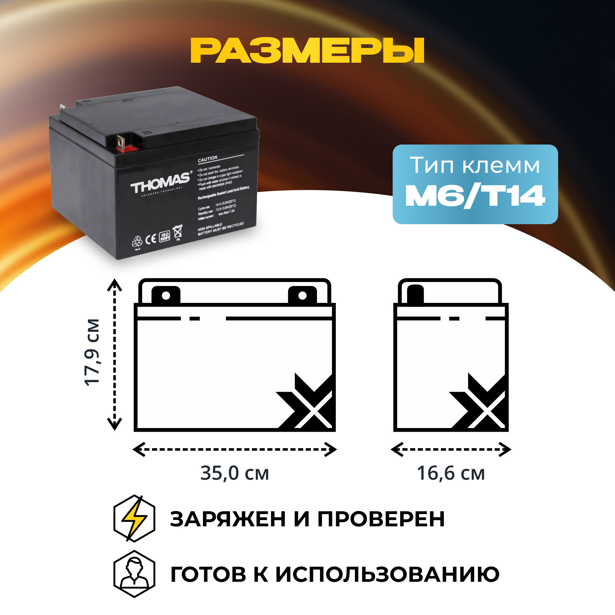 Аккумулятор для ибп 12v 26 Ah THOMAS AGM M5/T4 акб для эхолота, видеонаблюдения 166x175x125 мм