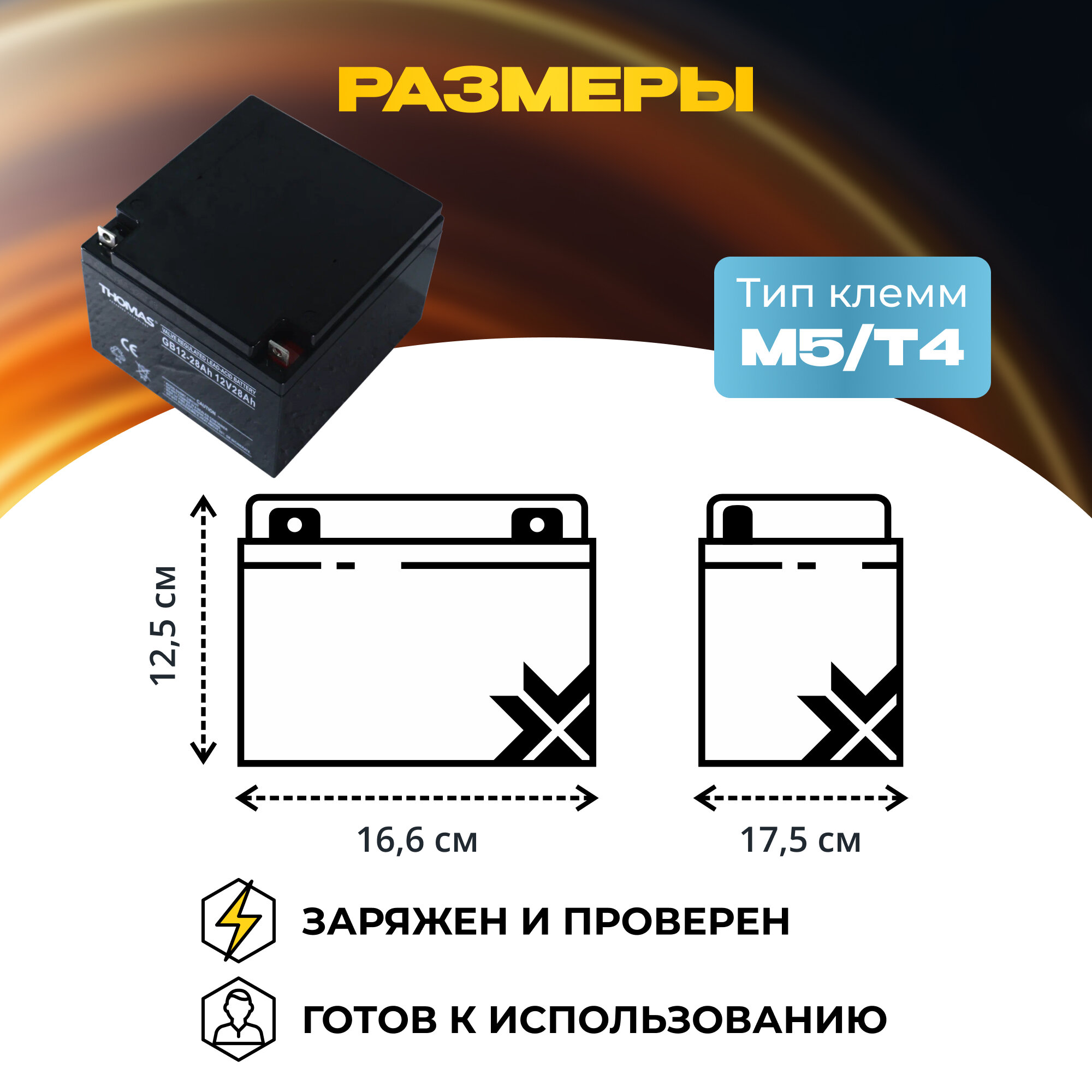 Купить Аккумулятор для ибп 12v 28 Ah THOMAS AGM M5/T4 акб котлов, охранной системы 166x175x125 мм