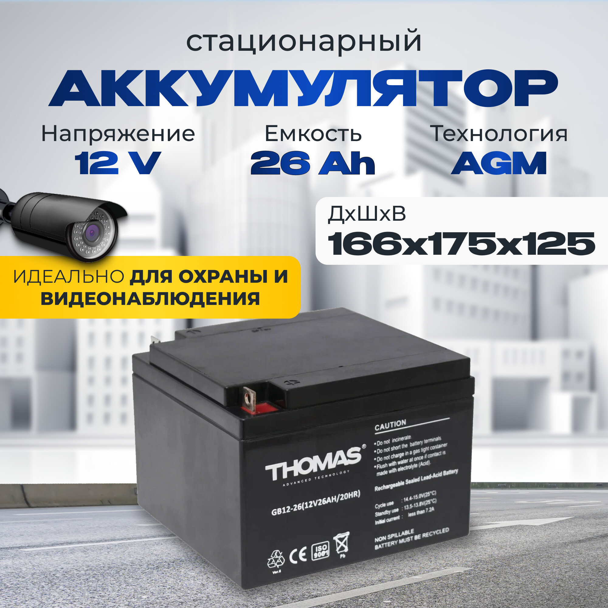 Аккумулятор для ибп 12v 26 Ah Thomas акб для системы видеонаблюдения, охранно-пожарной сигнализации, связи, эхолотов