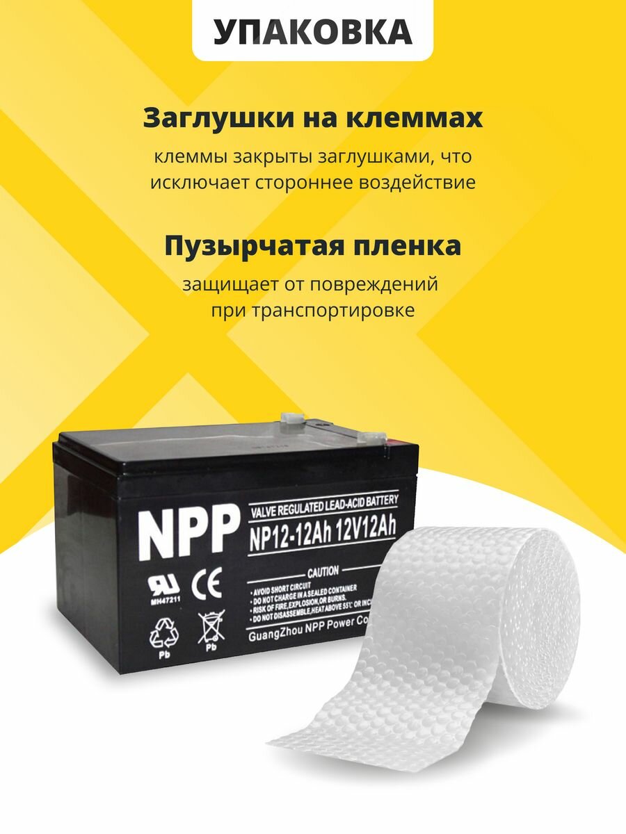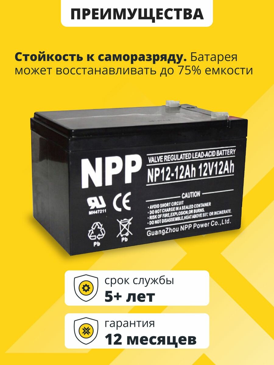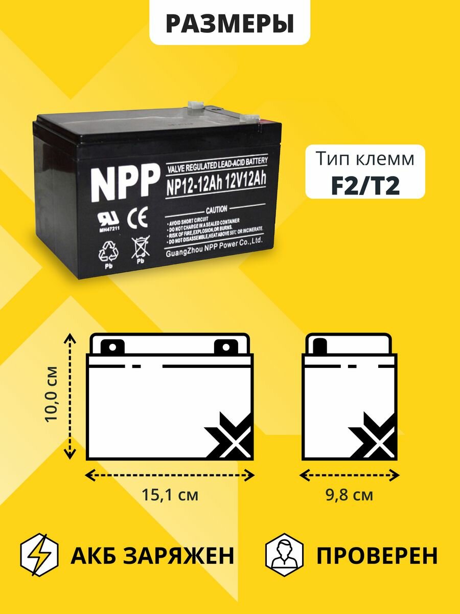 Аккумулятор для ибп 12v 12Ah NPP AGM F2/T2 акб на бесперебойник, эхолот 151x98x100 мм интересное: