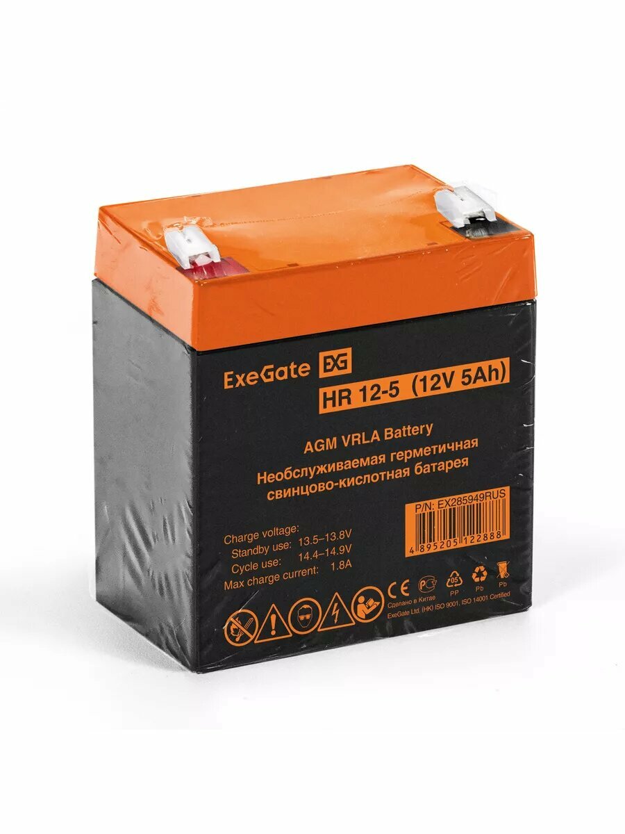 Аккумуляторная батарея ExeGate HR 12-5 (12V 5Ah 1221W, клеммы F1) EX285949RUS интересное: