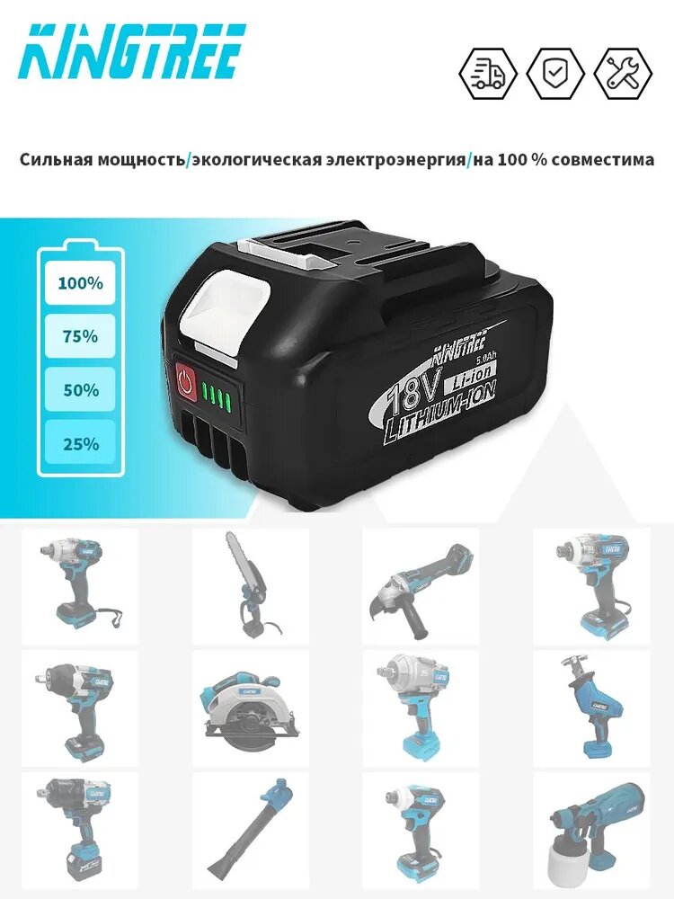 Литиевая батарея для наружного электроинструмента Kingtree 18V 5.0Ah, последняя модель Аккумулятор (1 акб) интересное: