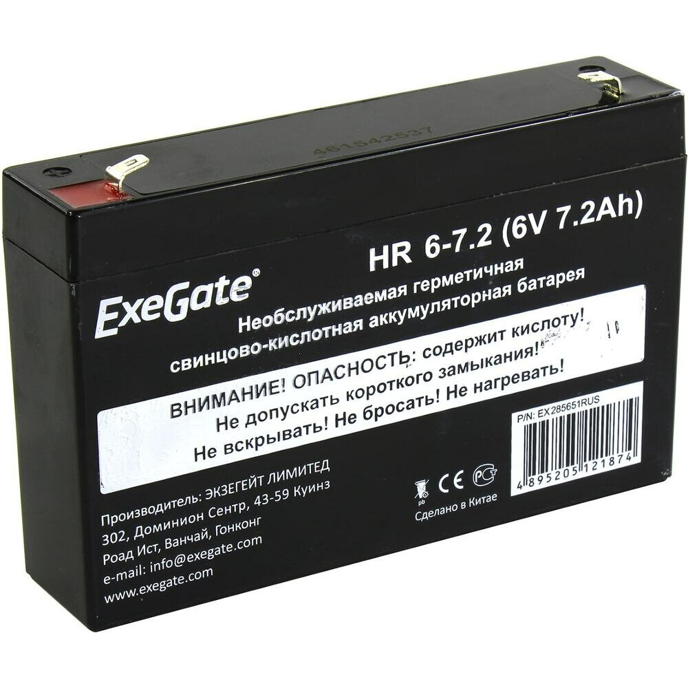 Купить Аккумуляторная батарея ExeGate HR 6-7.2 (6V 7.2Ah, клеммы F1) EX285651RUS