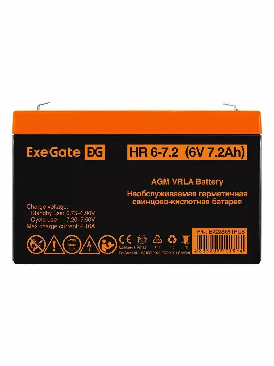 Аккумуляторная батарея ExeGate HR 6-7.2 (6V 7.2Ah, клеммы F1) EX285651RUS интересное: