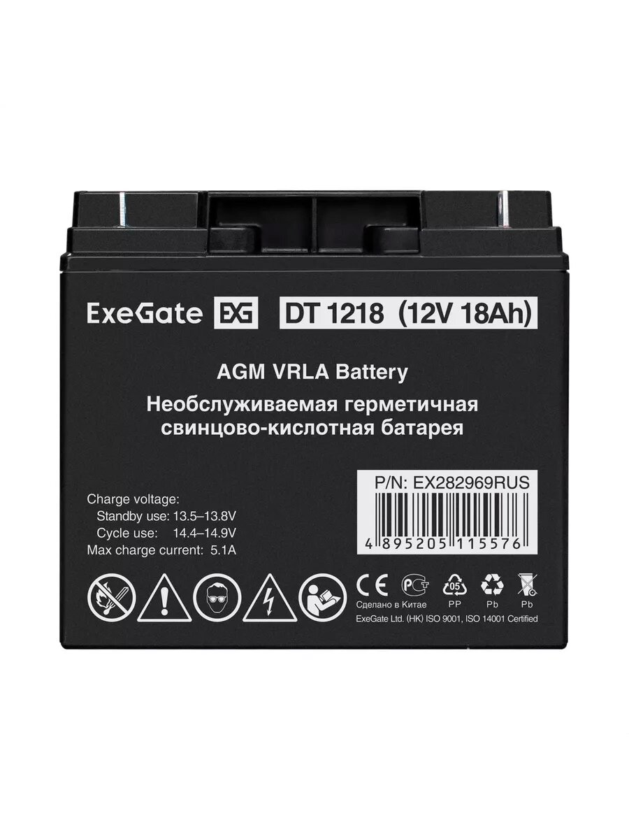 Аккумуляторная батарея ExeGate DT 1218 (12V 18Ah, клеммы F3 (болт М5 с гайкой)) EX282969RUS интересное: