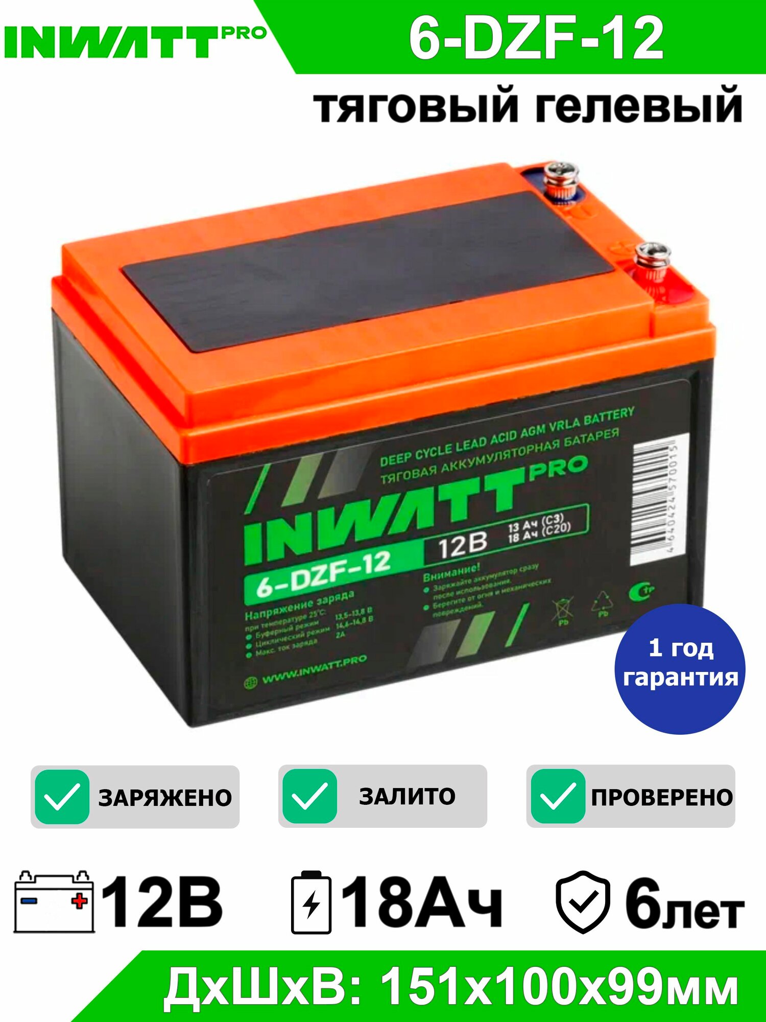СохранитьТяговый аккумулятор INWATT 6-DZF-12 (6-DZM-12) 12В 12Ач (12V 12Аh) гелевый AGM для детского электромобиля, эхолота и электротранспорта интересное: