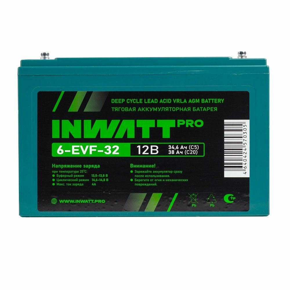 Купить Тяговый аккумулятор INWATT Pro 6-EVF-32 12В 38Ач (12V 38Ah) GEL для ИБП UPS поломоечной машины, штабелера, подъемника, электропогрузчика, тележки, транспортера, гольфкара