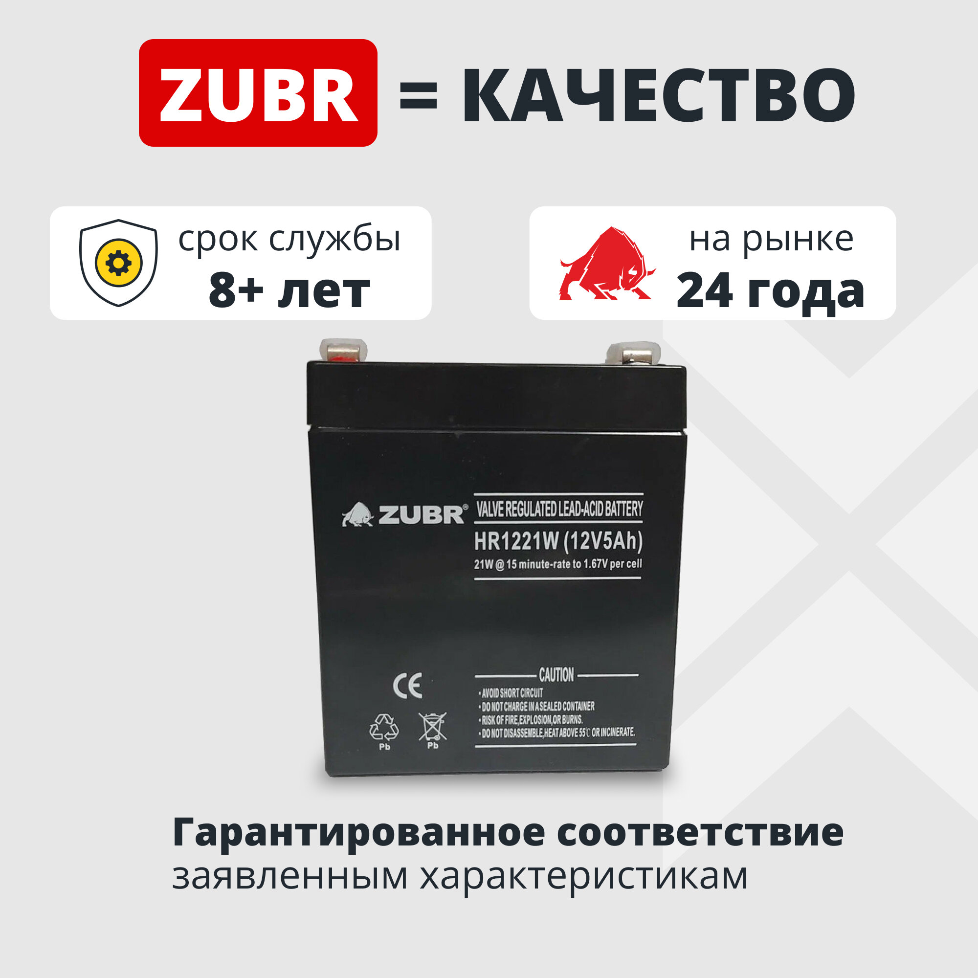 Купить Аккумулятор для ибп 12v 5 Ah ZUBR HR12-21W AGM F2/T2 акб радиоуправляемой машинки 90x70x106 мм