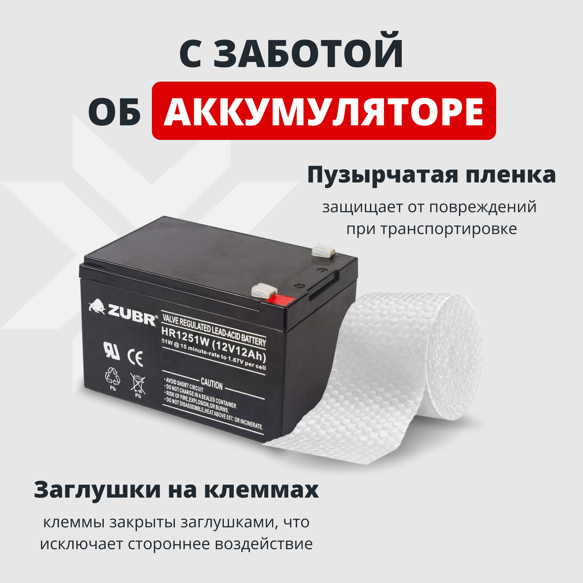 Аккумулятор для ибп 12v 6 Ah ZUBR HR12-24W AGM F2/T2 акб игрушечной машины, весов 151x51x100 мм