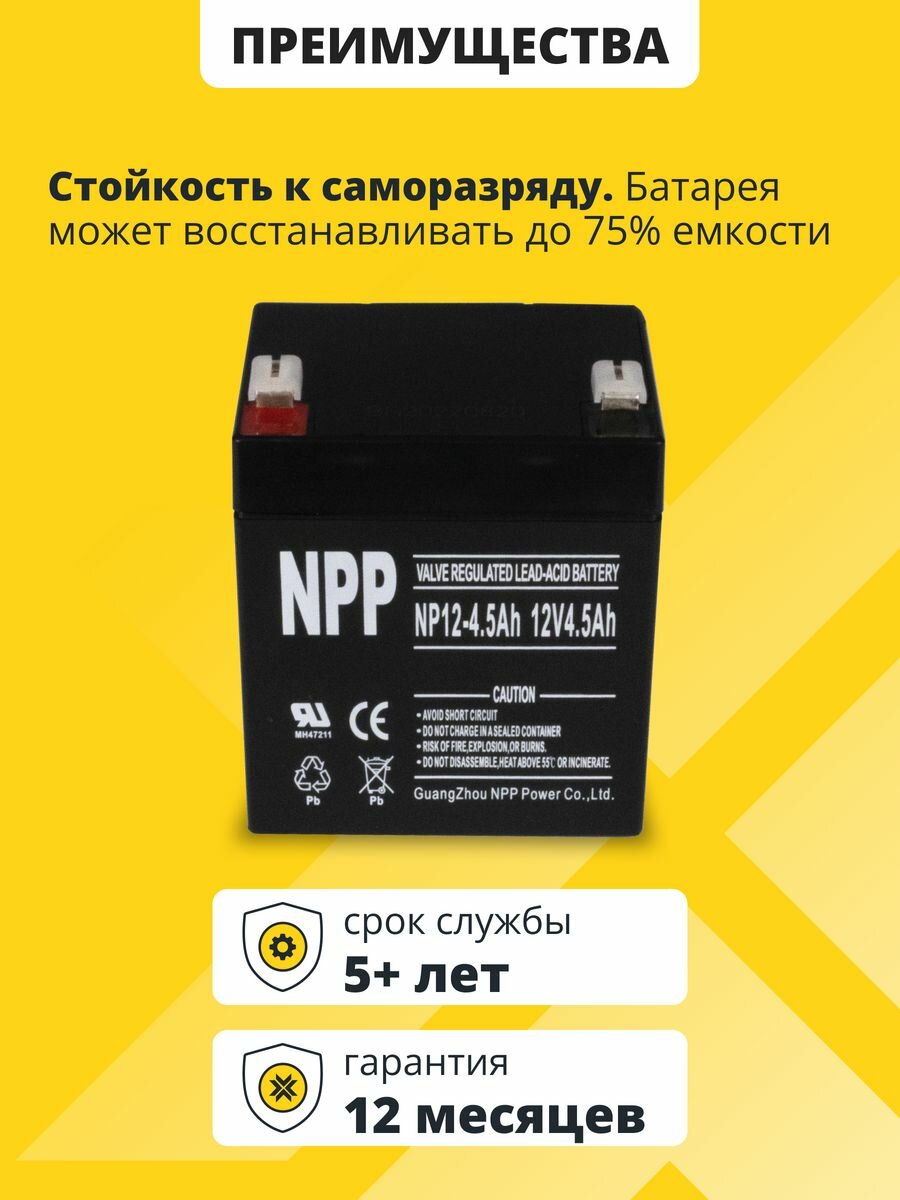 Аккумулятор для ибп 12v 4.5Ah NPP AGM F2/T2 акб детской машины, фонарика 90x70x106 мм интересное: