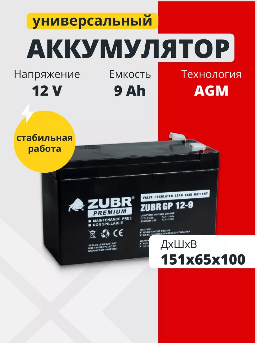 Купить Аккумулятор для ибп 12v 9Ah ZUBR AGM F2 на бесперебойник для дома