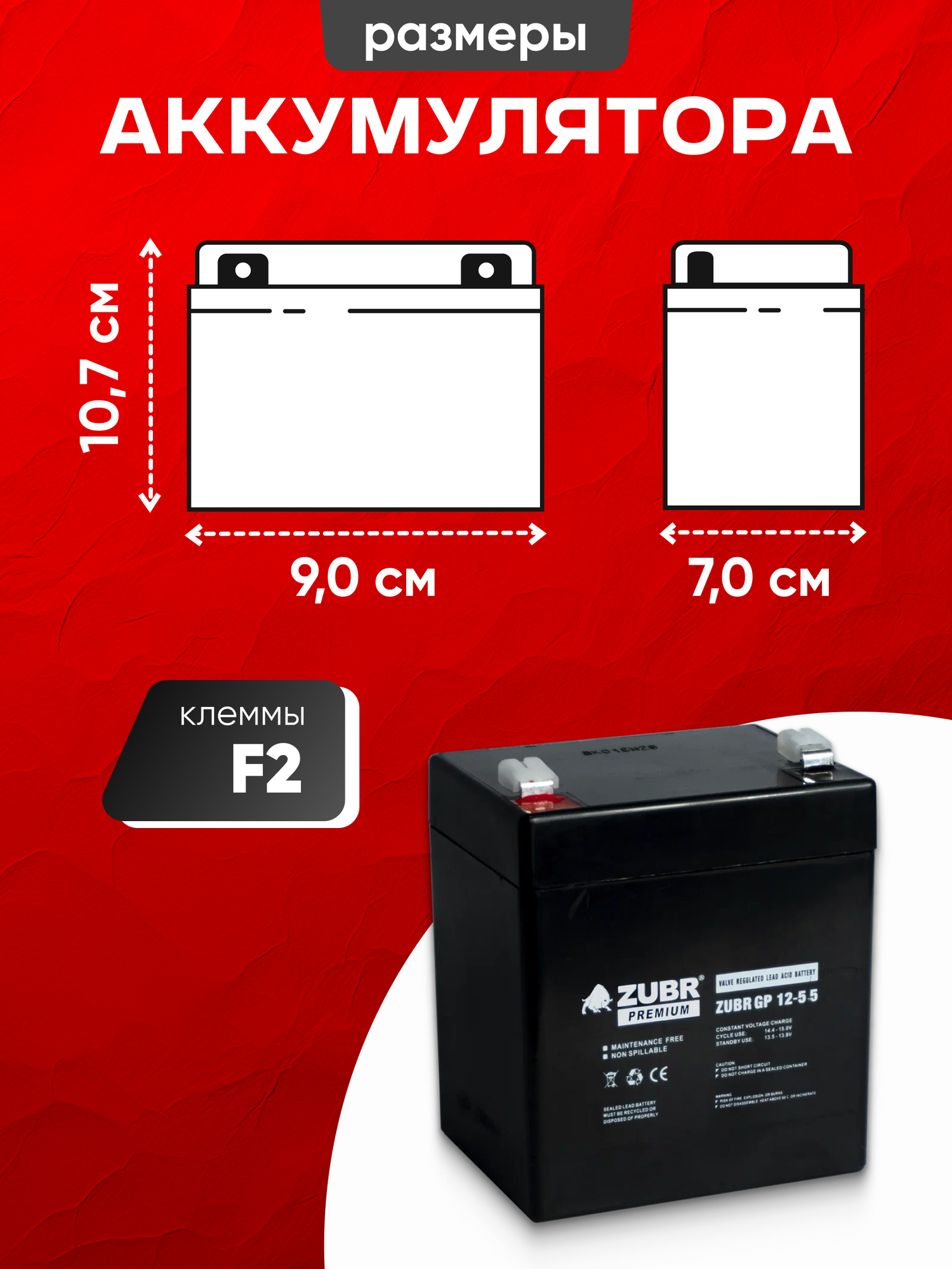 Аккумулятор 12v 2.3Ah ZUBR AGM F1/T1 на радиоупраяемую машинку, весы