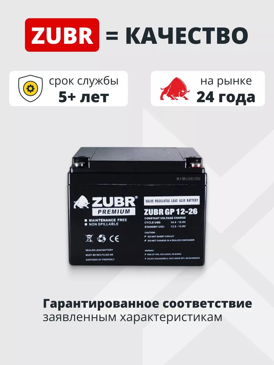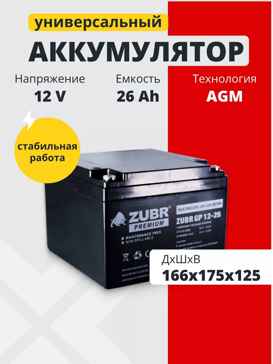 Купить Аккумулятор для ибп 12v 26 Ah ZUBR AGM M5/T4 эхолота, котла отопления