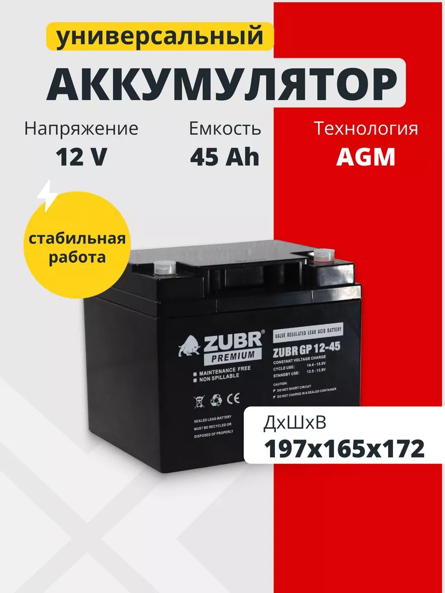 Купить Аккумулятор ибп 12v 45Ah ZUBR AGM M6/T14 на бесперейник компьютера