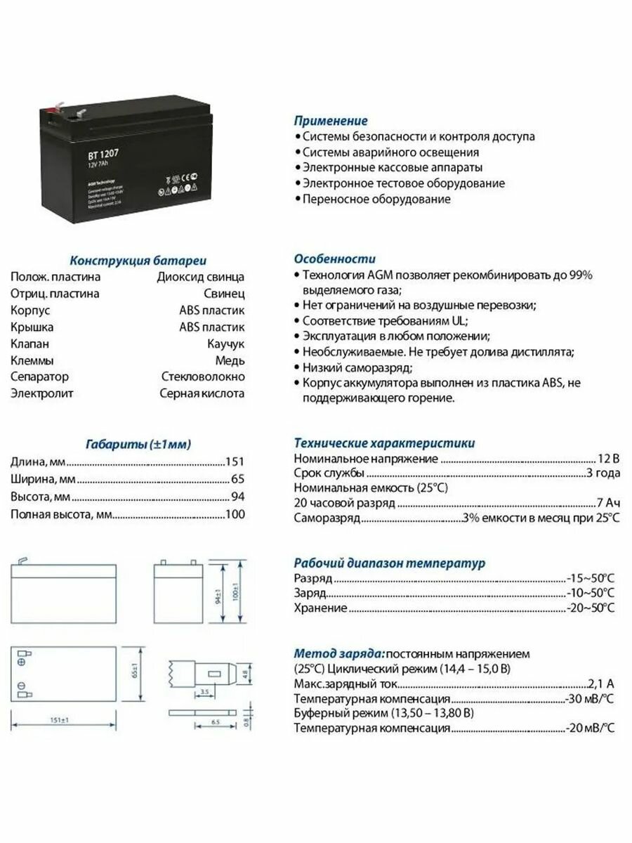 Аккумулятор 12V 7Ah, батарея BT-1207, охранная и пожарная сигнализация, опрыскиватель, ИБП интересное: