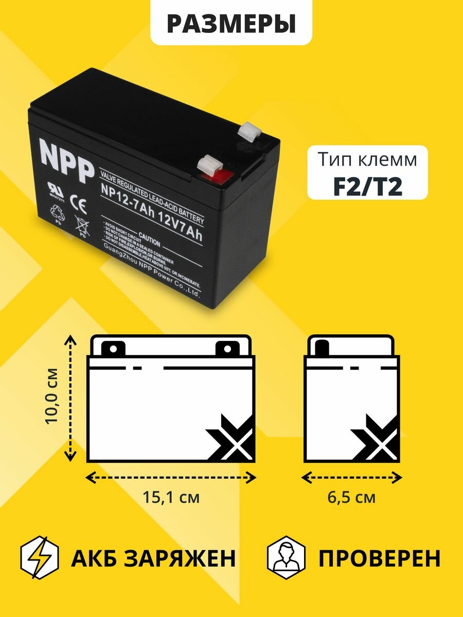 Аккумулятор для ибп 12v 7 Ah NPP AGM F2/T2 акб эхолота, весов, фонаря 151x65x100 мм интересное: