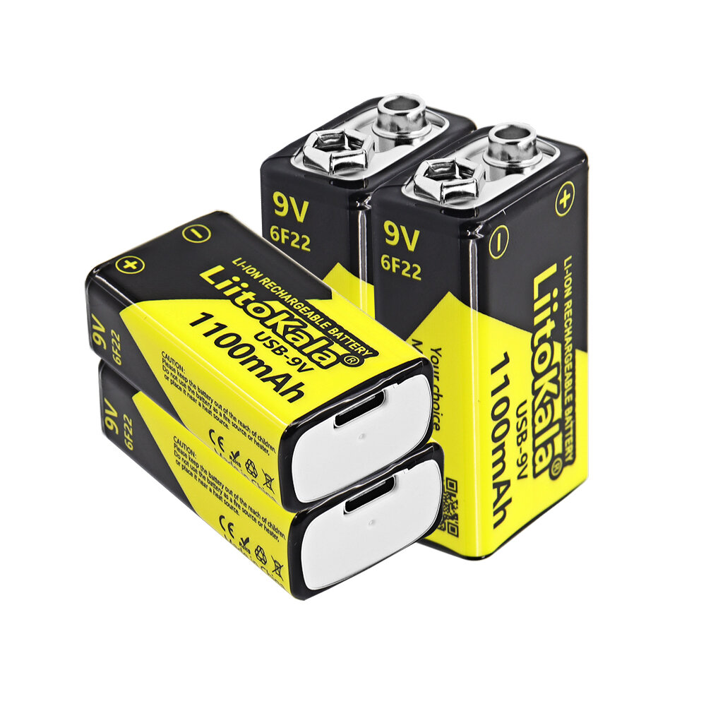 Купить LiitoKala USB-9V 1100mAh Литий-ионный аккумулятор*4шт + кабель для зарядки 1 tow 4 Type-C*1шт