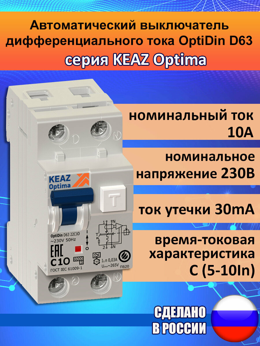 Автоматический выключатель дифференциального тока, дифавтомат OptiDin D63 на 10А, 30mA, ВТХ-C, с защитой от сверхтоков интересное: