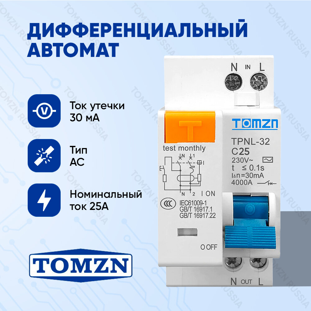 Дифференциальный выключатель TOMZN TPNL 25А 2Р 30мА тип АС интересное: