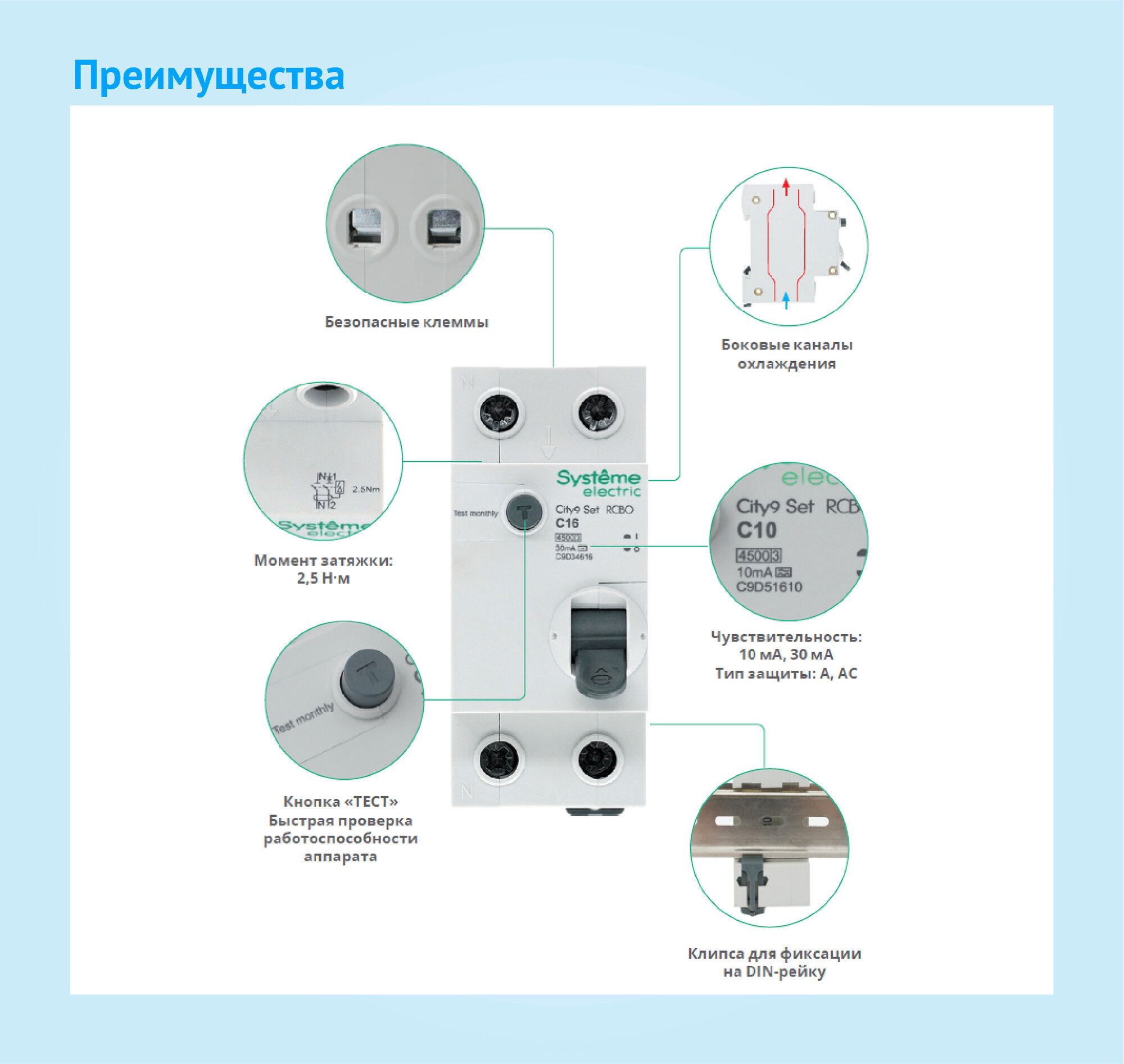 Дифавтомат Systeme Electric "City9 Set", 16 A, ток утечки 30 mA