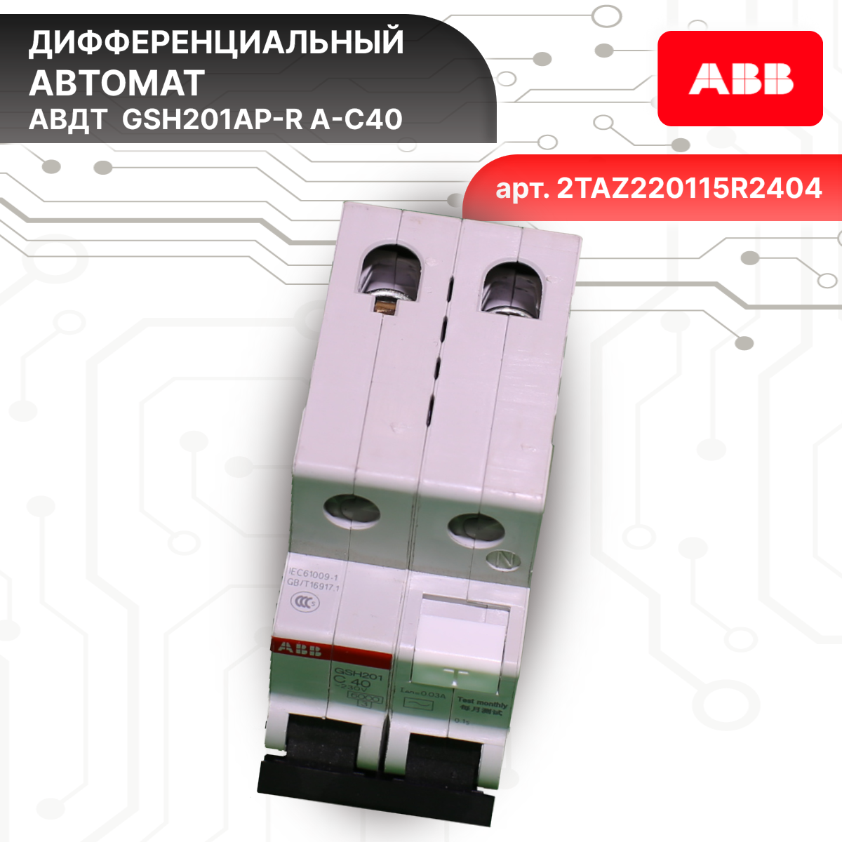 Дифавтомат 2P (1П+N) 40А 6кА 30мА C A GSH201AP-R 2TAZ220115R2404 ABB 1шт интересное:
