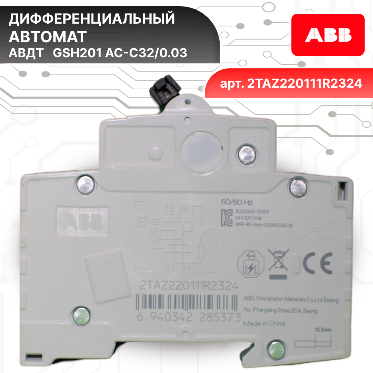 Дифавтомат 2P (1П+N) 32А 6кА 30мА C AC GSH201 2TAZ220111R2324 ABB 1шт интересное: