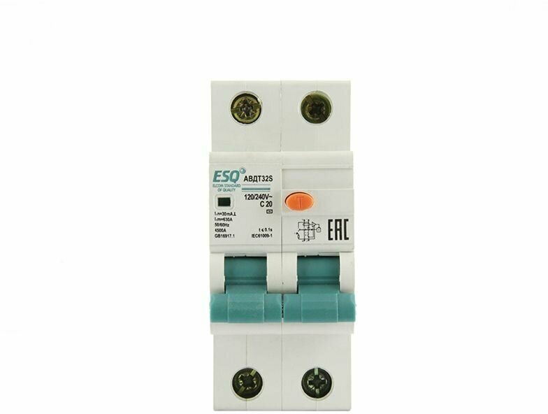 Купить Дифференциальный автомат ESQ АВДТ-32S 1P+N 20А 30мА 4.5кА хар-ка С (электр, тип АС)