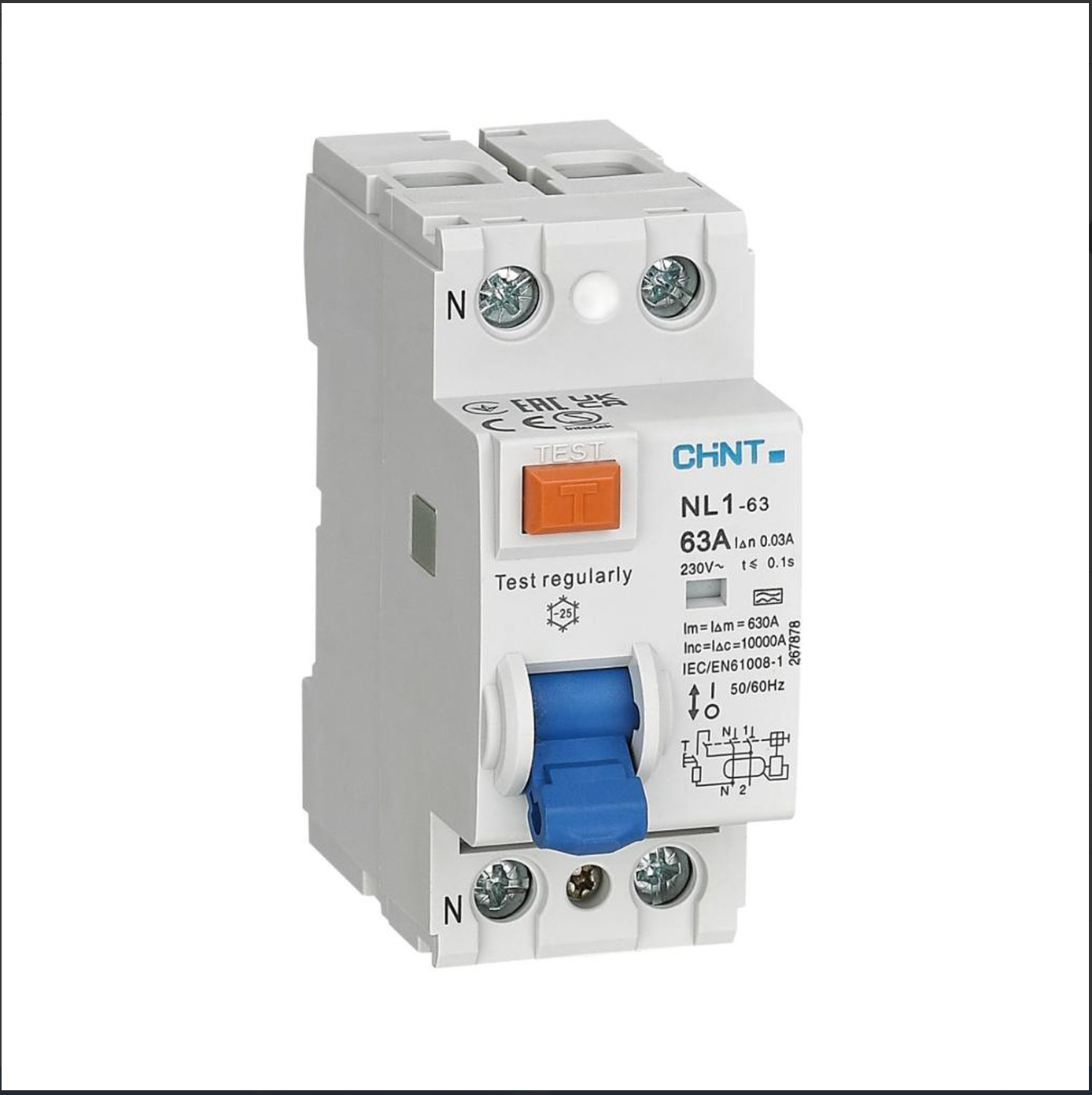 Автоматический выключатель с остаточным током (УЗО) CHINT NL1- 63 (R) 2P 63A 30mA AC