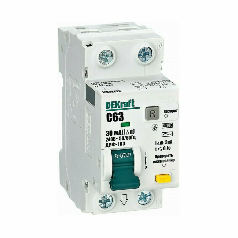 Выключатель дифференциального тока DEKraft ДИФ-103 1Р+N, 63А, C, 4,5кА, 30мА, тип AC интересное: