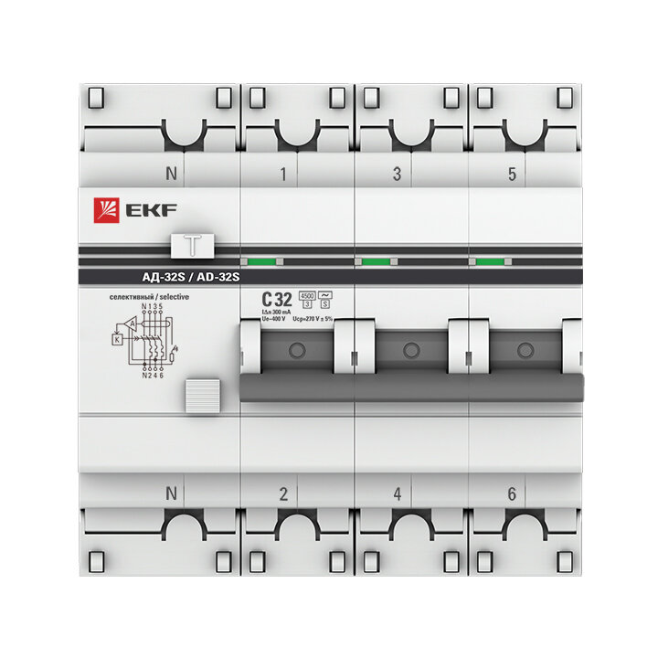 Дифференциальный автомат АД-32 (селективный) 3P-N 32А-300мА EKF PROxima интересное: