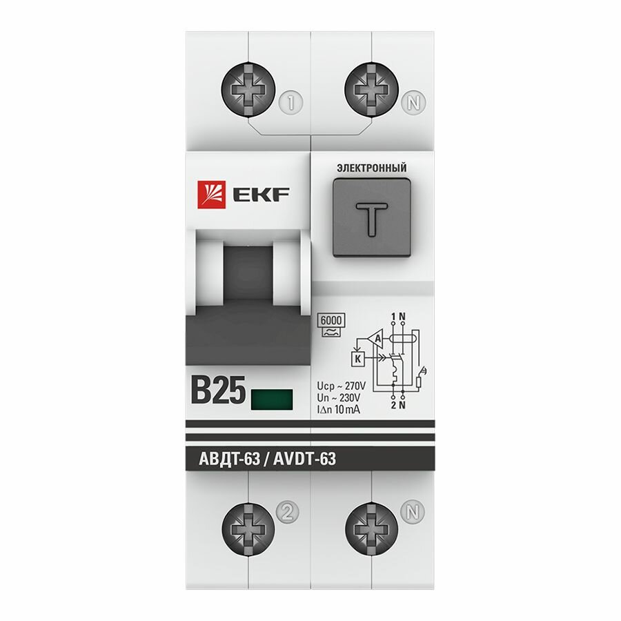 Дифференциальный автомат АВДТ-63 25А 10мА (характеристика B, электронный, тип А) 6кА EKF PROxima интересное: