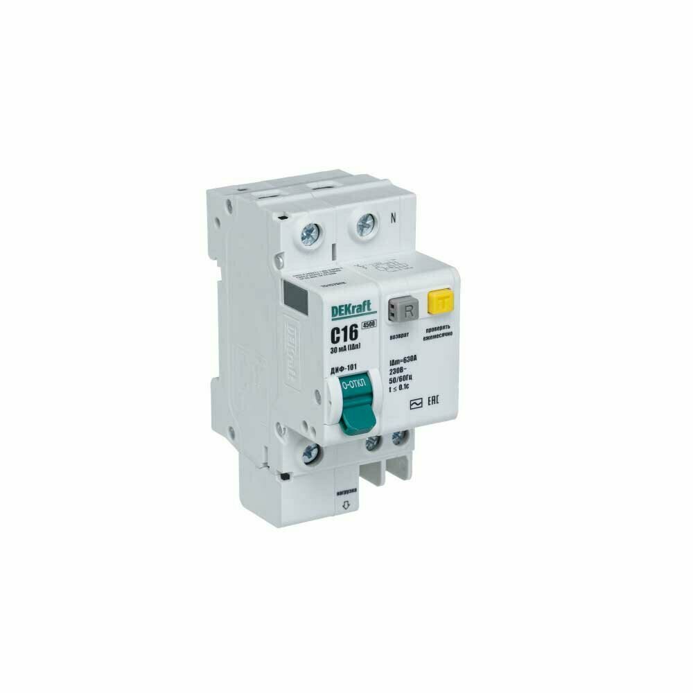 Купить DEKraft ДИФ-101 Дифференциальный автоматический выключатель 1P+N 16А 30мА тип AC (С)