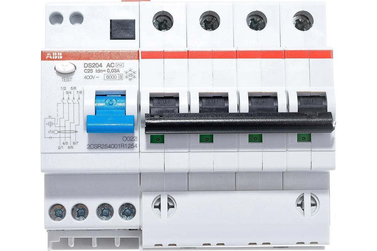 Дифференциальный автомат ABB 4-ПОЛЮСНЫЙ DS204 AC-C25/0,03 6 модулей
