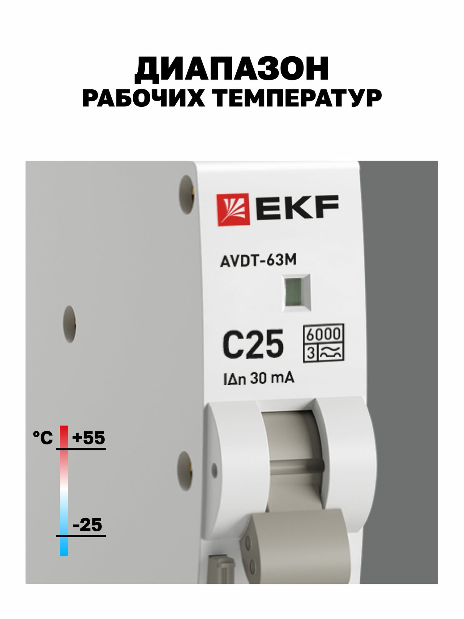 Автоматический выключатель дифференциального тока АВДТ-63M 1P-N (18мм) 25А 10мА характеристика С тип A электронный 6кА PROXIMA EKF
