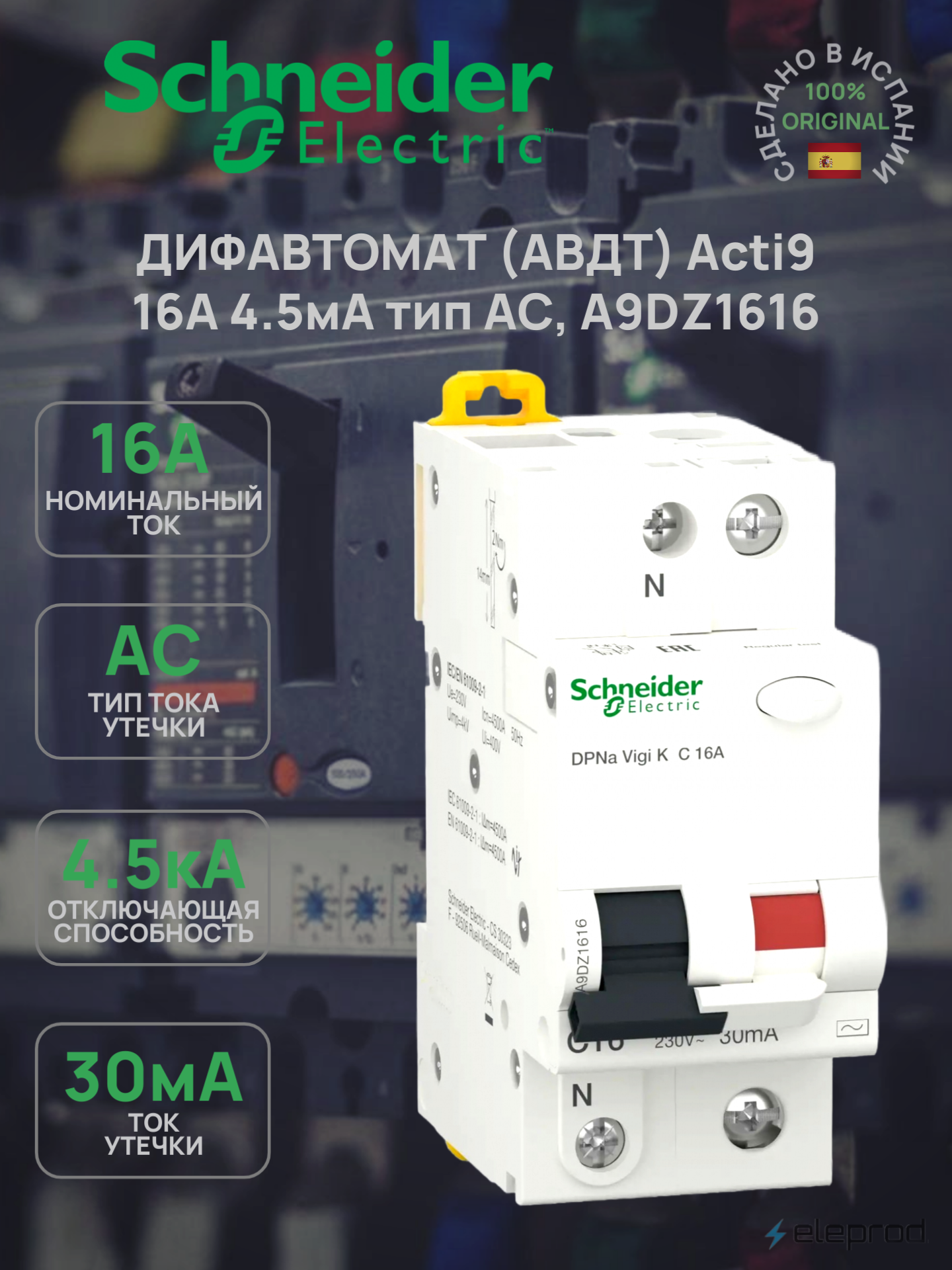 Ниже Вы можете прочитать отзывы на Дифференциальный автоматический выключатель Schneider Electric Acti9 DPNa Vigi K 1P+N C 16А 4.5кА 30мА тип AC, A9DZ1616, ознакомится с подробными характеристиками, посмотреть интересные обзоры и фотографии на Дифференциальный автоматический выключатель Schneider Electric Acti9 DPNa Vigi K 1P+N C 16А 4.5кА 30мА тип AC, A9DZ1616.