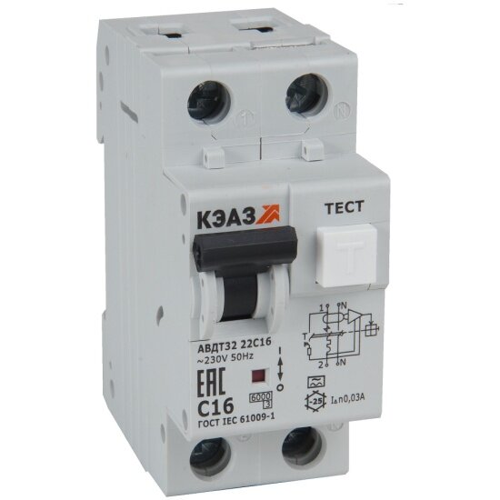 Автоматический выключатель дифференциального тока с защитой от сверхтоков КЭАЗ 2P C20 30mA