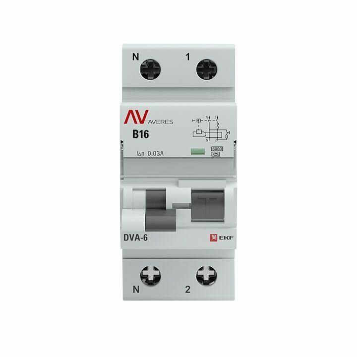 Дифференциальный автомат DVA-6 1P-N 16А (B) 30мА (A) 6кА EKF AVERES интересное: