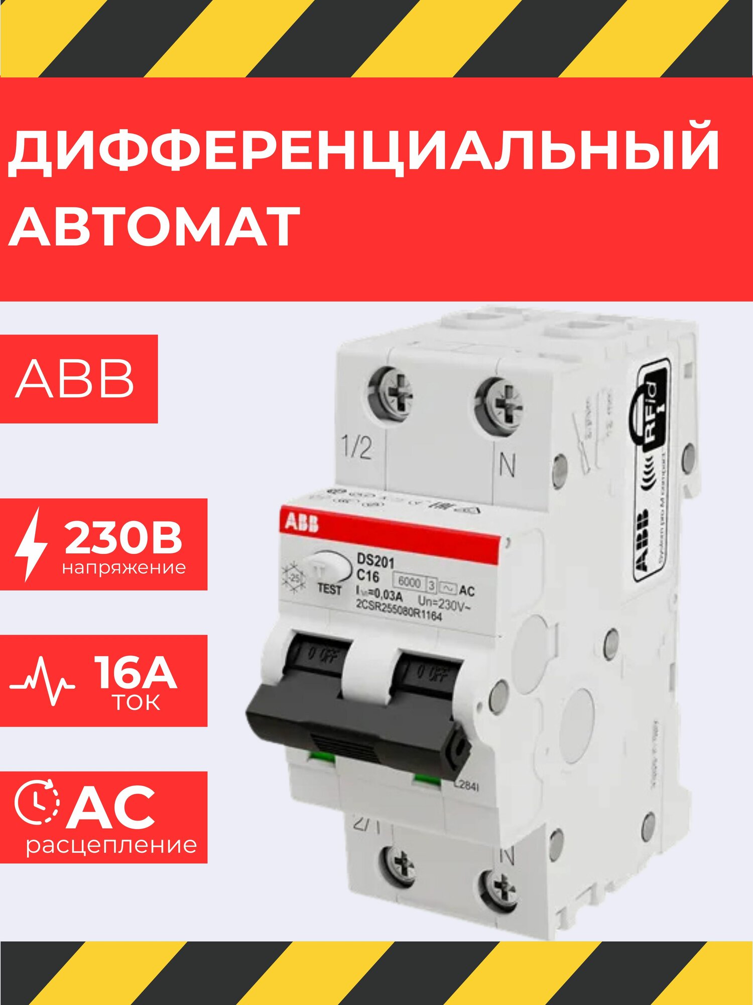 Автоматический выключатель дифференциального тока ABB DS201 C16 AC30 2CSR255080R116 интересное:
